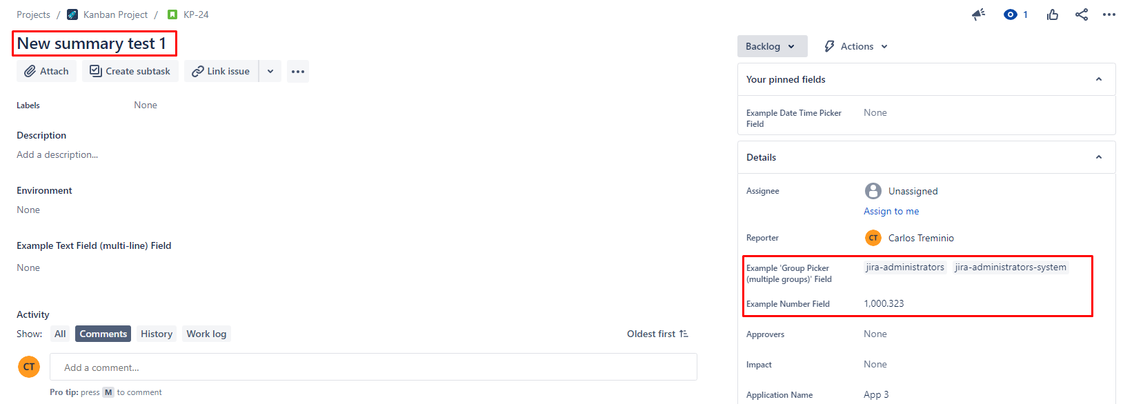 **OPTIONAL,** you can define custom-fields values you want to set on the issue creation. This library supports the following custom-fields types: